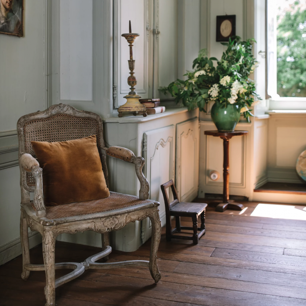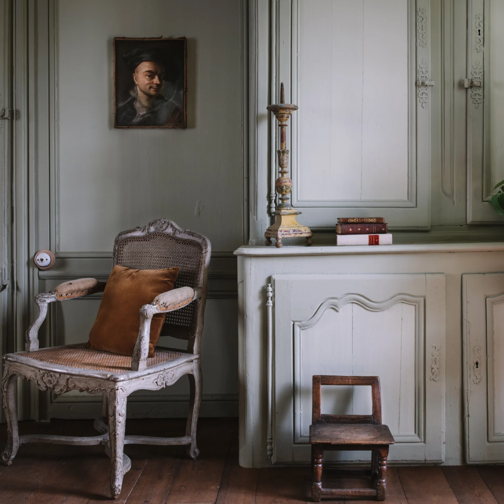 De culoare gri verde moale, această vopsea verde Resource, din colecția Antoinette Poisson, ne cufundă într-un univers întineritor și protector.