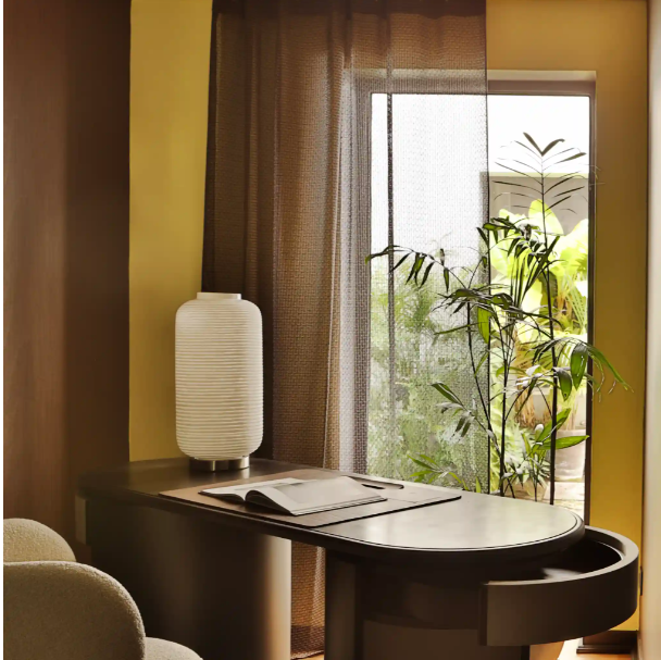 Această vopsea galbenă Resource din colecția Antoinette Poisson este unică. În interior, într-o cameră de zi, un dormitor, o baie, o bucătărie sau în aer liber pe mobilier din lemn sau metal, această culoare galbenă energizează și luminează.