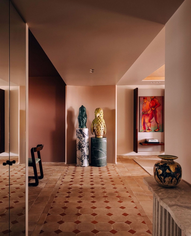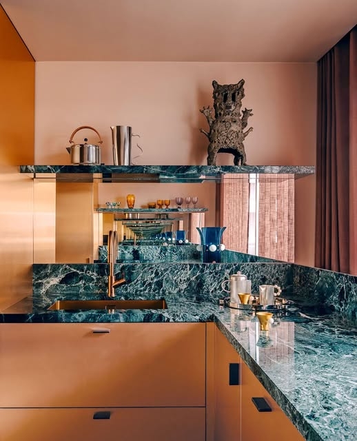 Se asociază armonios cu nuanțe calde, este valorizat în compania materialelor naturale, ca lemnul, inul, marmura si contrastează perfect decorurile geometrice. Cuivre Poli este reinterpretarea maroului în rezonanțe și intonații actuale.