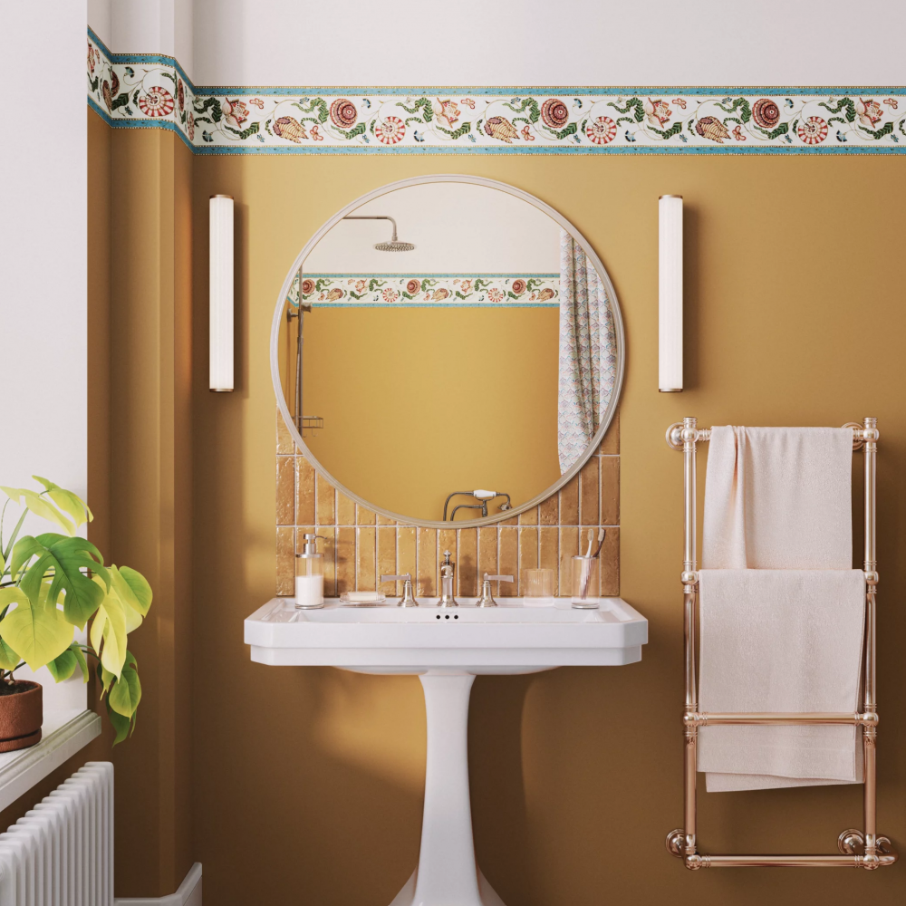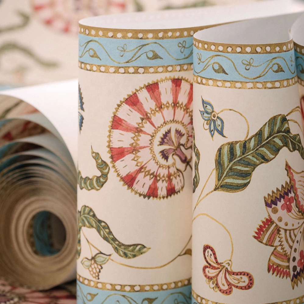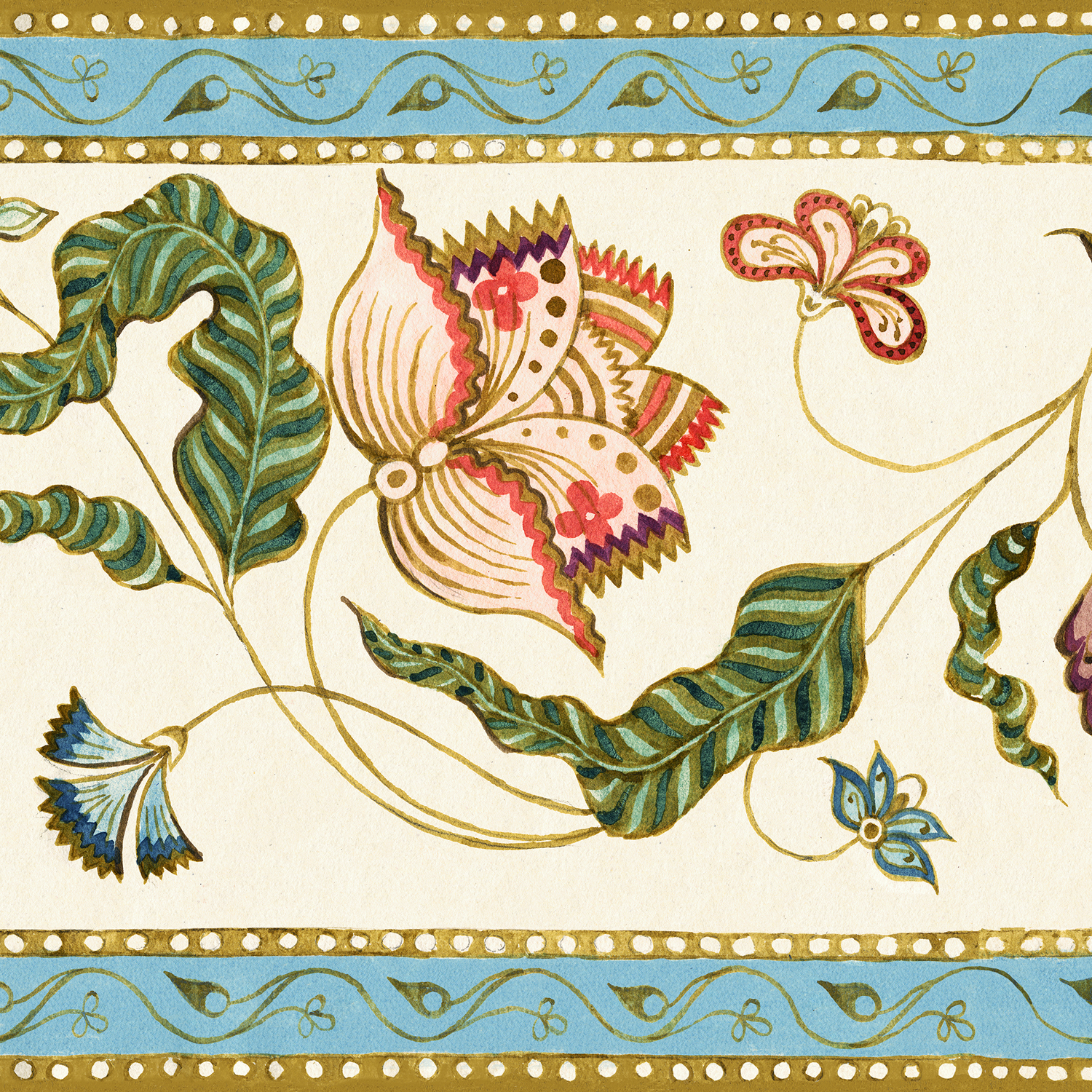 Inspirat de mișcarea delicată a sulurilor indiene, Indian Frieze preia o parte din motivul Arborele Vieții pentru a fi disponibil la nesfârșit în frize orizontale sau verticale, în asociere cu celelalte motive și nuanțe ale colecției.
