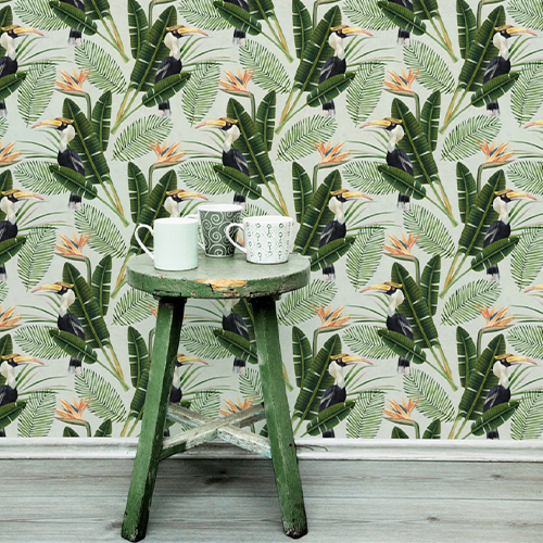 Inspirat de florile uimitoare ale paradisului găsite în cele mai frumoase locuri tropicale, tapetul premium BIRDS OF PARADISE afișează minunat o vegetație luxuriantă minunată, în armonie perfectă cu păsările exotice locale.