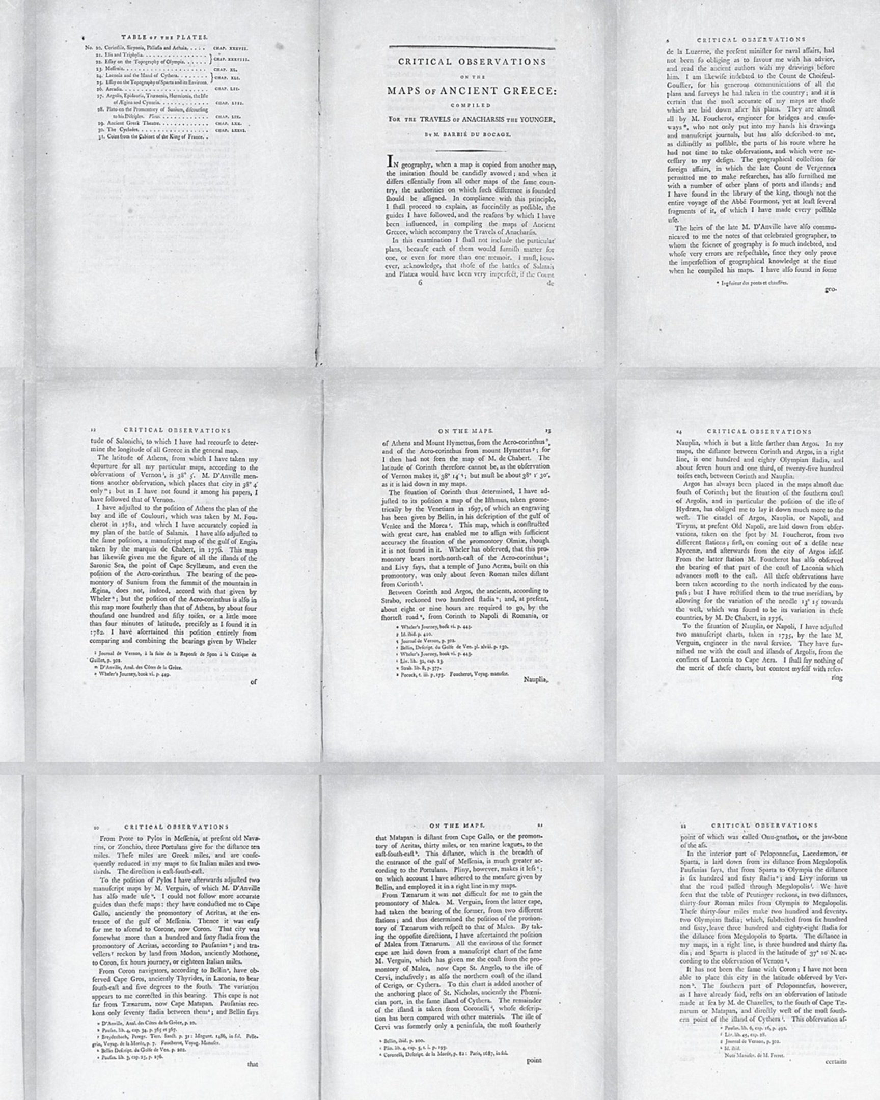 O colecție de pagini dintr-un studiu științific al hărților grecești antice.
