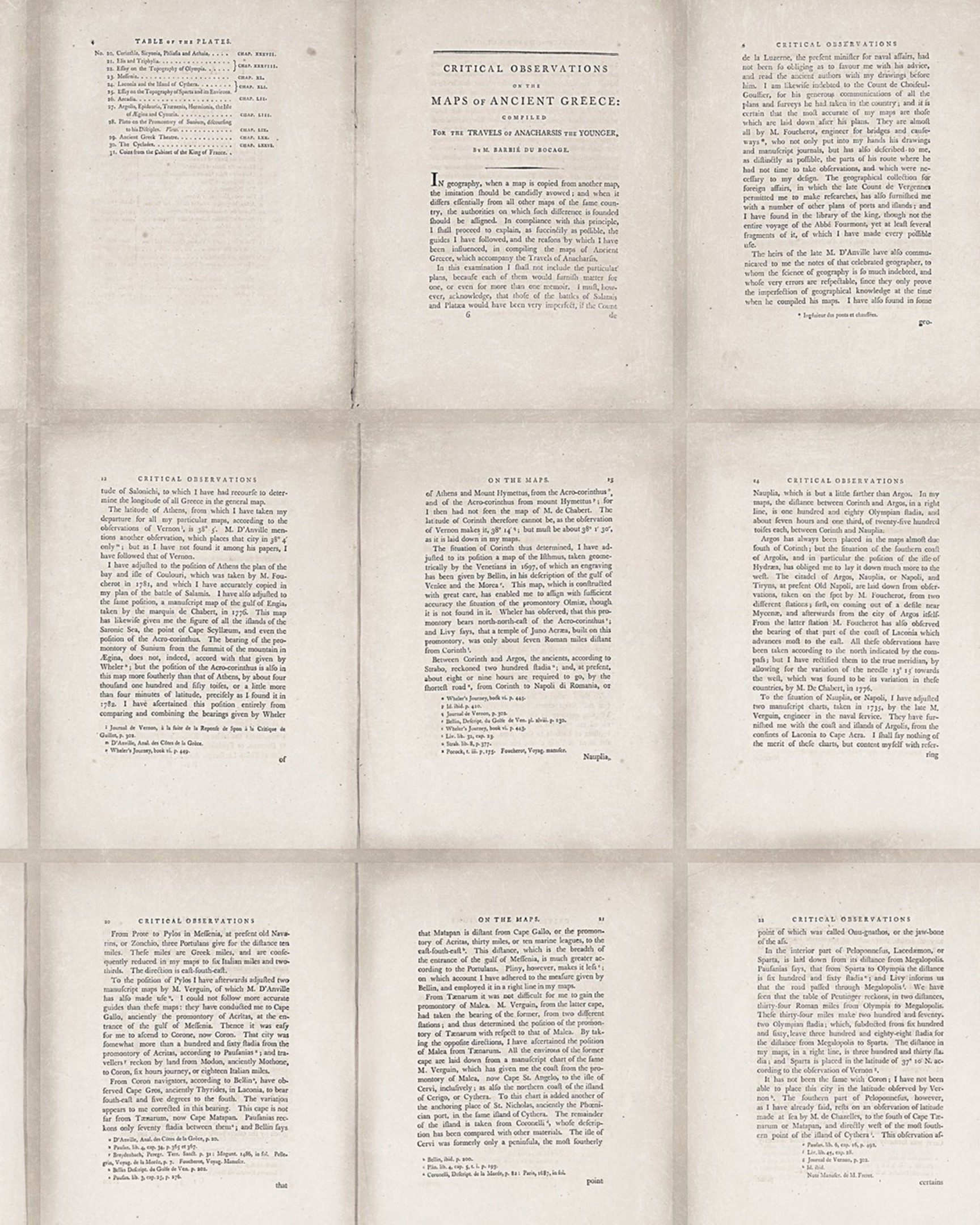 O colecție de pagini dintr-un studiu științific al hărților grecești antice.