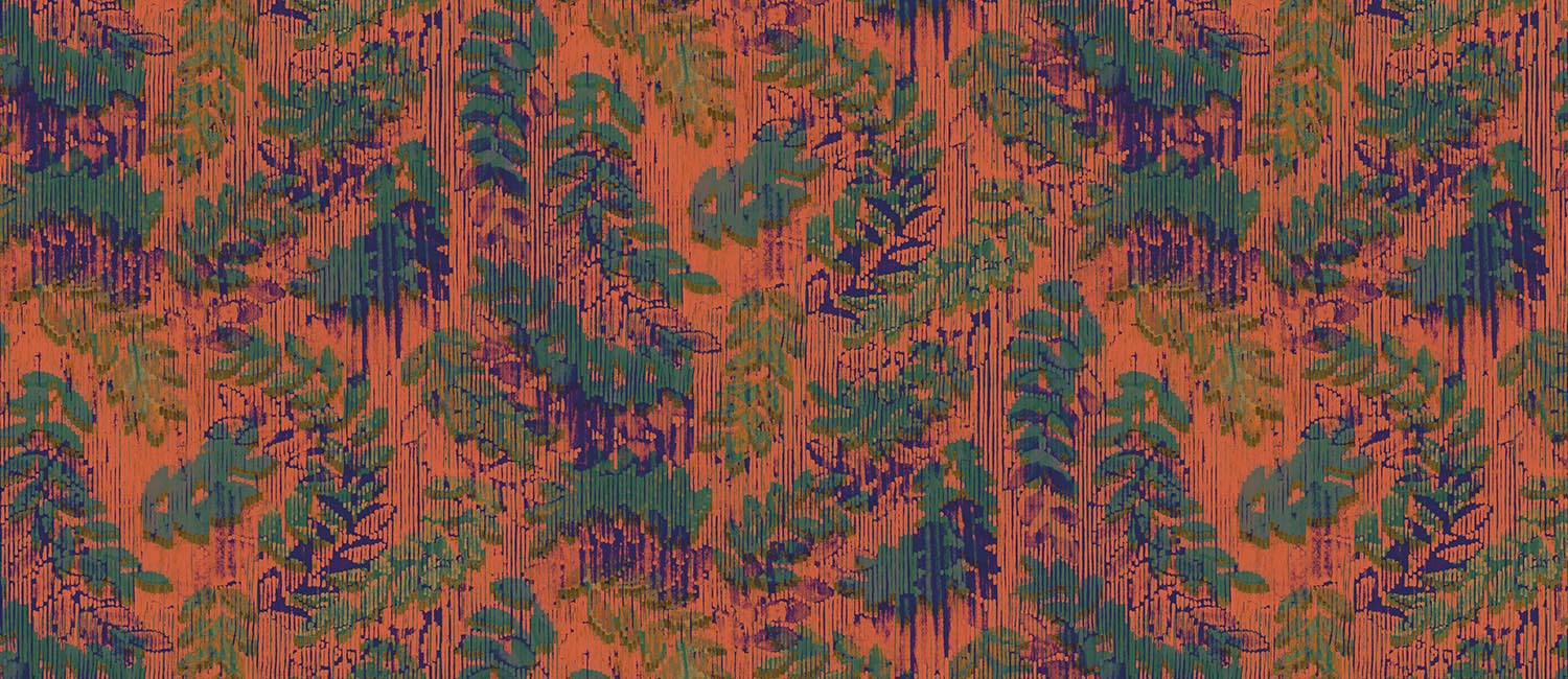 Motivul Rameaux recreează spiritul unei tapiserii cu efect uzat, sporit de modernitate prin acorduri de culori vibrante și uneori acide.