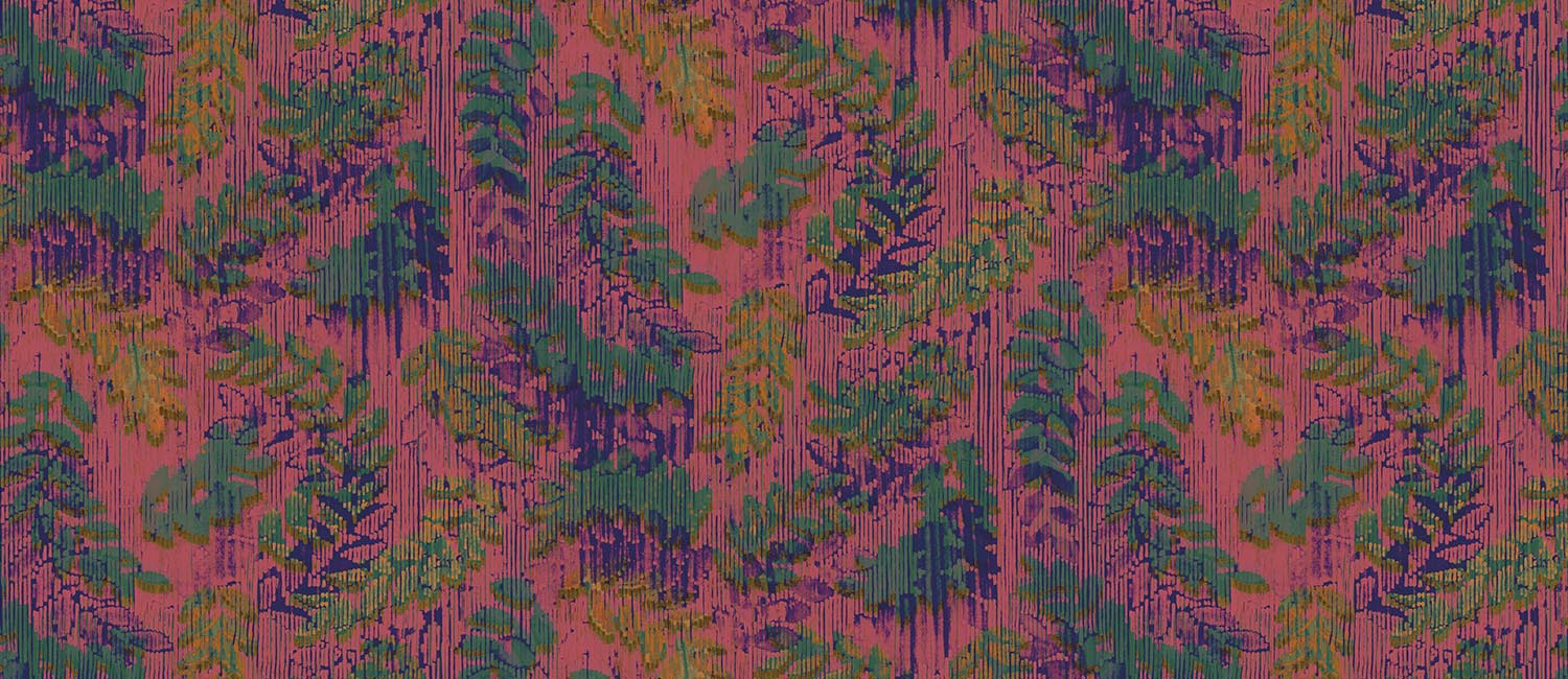 Motivul Rameaux recreează spiritul unei tapiserii cu efect uzat, sporit de modernitate prin acorduri de culori vibrante și uneori acide.