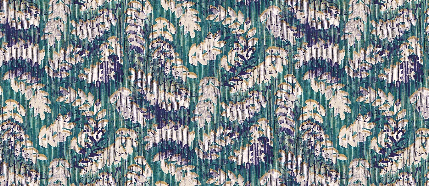 Motivul Rameaux recreează spiritul unei tapiserii cu efect uzat, sporit de modernitate prin acorduri de culori vibrante și uneori acide.