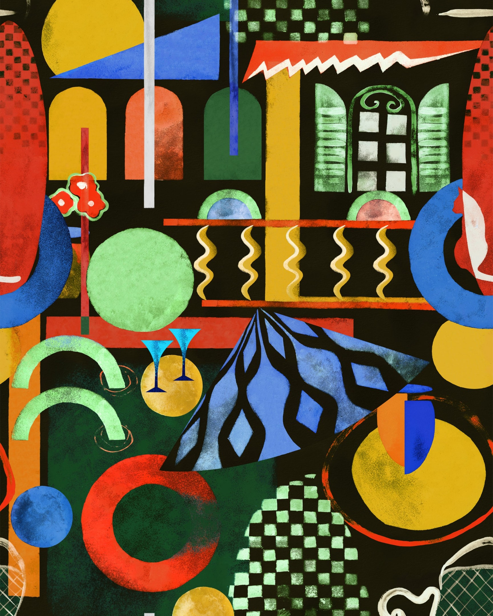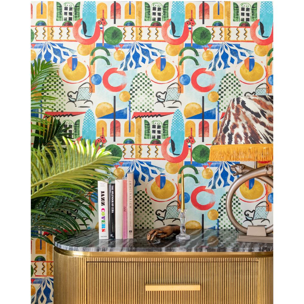 O verandă însorită, trezită de o briză italiană fermecătoare prin ferestre capricioase care încadrează peisajul pitoresc de dincolo. De la tonurile pământii ale teracotei până la adâncurile azurii ale cerului mediteranean, fiecare nuanță rezonează cu spiritul vesel de convivialitate și relaxare. În mijlocul motivelor geometrice complicate, vignete fermecătoare ale răsfățului pe îndelete așteaptă să fie descoperite - un pahar de limoncello răcit, un castron de smochine coapte, un colț iluminat care vă invită să mai zăboviți puțin. Lăsați-vă ochii să vadă povești despre după-amiezi leneșe cu acest design în stil modern, o odă pentru conversațiile lângă și momentele prețuite scăldate în strălucirea blândă a amurgului. Disponibil și pe un fundal profund captivant.