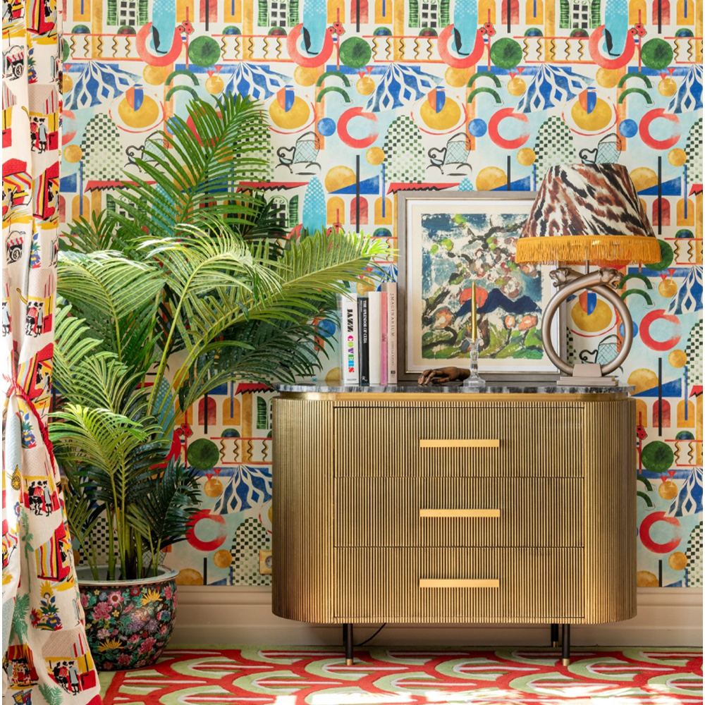 O verandă însorită, trezită de o briză italiană fermecătoare prin ferestre capricioase care încadrează peisajul pitoresc de dincolo. De la tonurile pământii ale teracotei până la adâncurile azurii ale cerului mediteranean, fiecare nuanță rezonează cu spiritul vesel de convivialitate și relaxare. În mijlocul motivelor geometrice complicate, vignete fermecătoare ale răsfățului pe îndelete așteaptă să fie descoperite - un pahar de limoncello răcit, un castron de smochine coapte, un colț iluminat care vă invită să mai zăboviți puțin. Lăsați-vă ochii să vadă povești despre după-amiezi leneșe cu acest design în stil modern, o odă pentru conversațiile lângă și momentele prețuite scăldate în strălucirea blândă a amurgului. Disponibil și pe un fundal profund captivant.